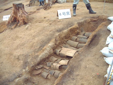 古代の半地下式窖窯(あながま)7基、平窯(ひらがま)2基の合わせて9基の瓦窯が極めて保存のよい状態で発見されました。