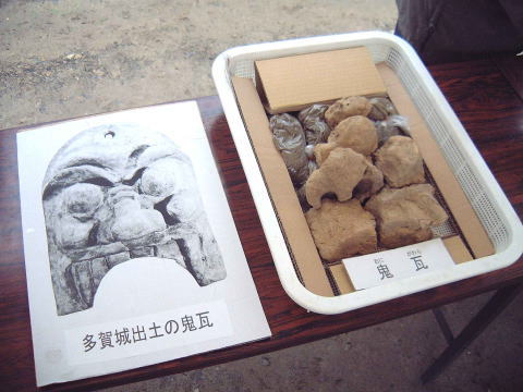 出土した鬼瓦(おにがわら)。