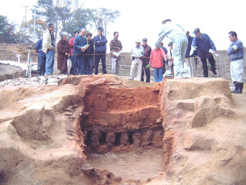 発掘された窯跡。