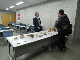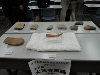 今年度も発表遺跡から出土した遺物の展示を実施した。研究者間で展示資料に関する議論があり、一般の方にも好評であった。展示時間が短い、展示遺跡数が少ないなどの意見があることから改善していきたい。 |