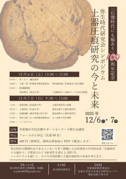 シンポジウムを通して、その今日的評価と土器圧痕研究の未来を考えます。