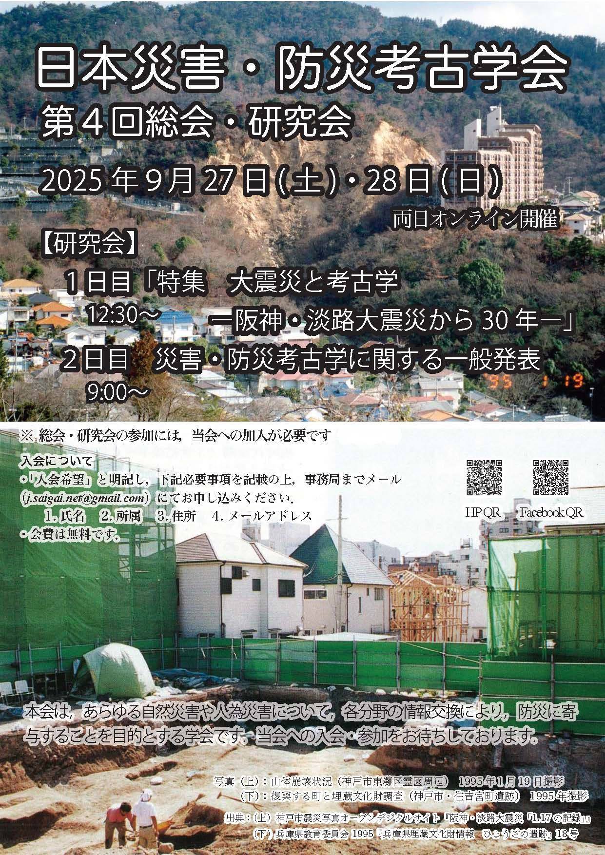 | 日本災害・防災考古学会 第4回総会・研究会 |