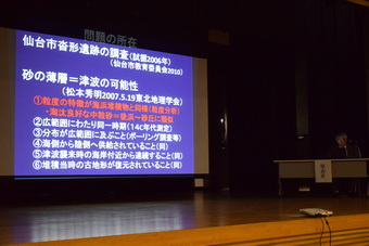 一般研究発表では2件の発表があり、ともに過去に発生した津波を扱った内容であった。会場からは質問や今後の研究のあり方について提言があった。 |