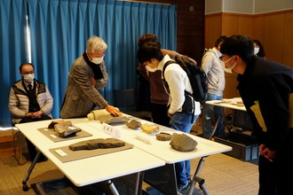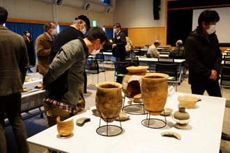 また、遺物の展示を行い、発表の理解を進める上で大変好評であった。展示会場では各参加者間で活発な意見交換が行われた。 |