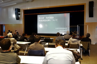 パソコンを利用したスライドによる発表が全体を占め、調査担当者から現場を直に説明頂くような形で発表会を開催した。今回、発表スライドに動画を用いた発表がみられるようになった。 |