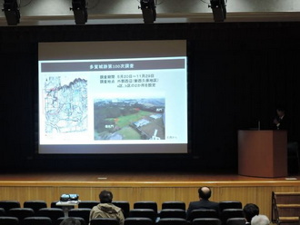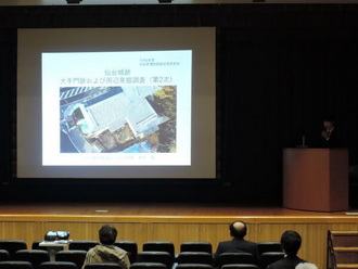 パソコンを利用したスライドによる発表により担当者から調査現場の様子や遺構・遺物の確認状況を直に説明頂くような形で開催した。 |